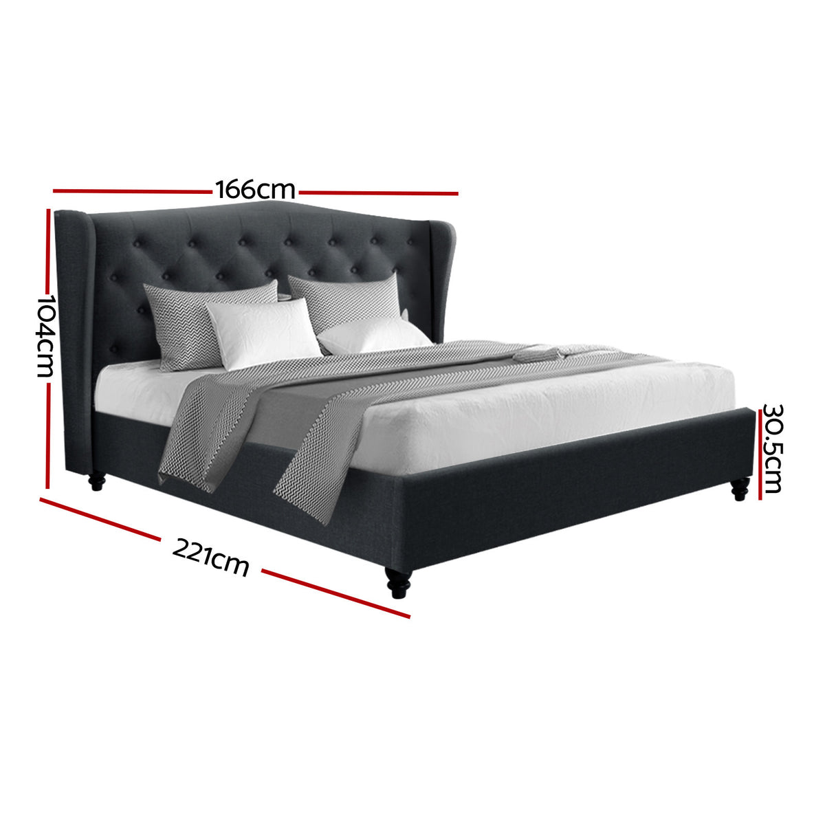 The iconic European wing headboard reflects prestigious grandeur while the tufted design complements its overall image. Padded with high density foam and upholstered in breathable non-woven linen fabric, the Pier Bed Frame is comfortable to lean on and soft to the touch.