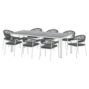 Experience the best the outdoors has to offer with this Sorrento 9-piece Outdoor Dining Setting. Featuring eight single chairs and a matching dining table, this set is perfect for sitting outside and watching the world go by in comfort and style. The set is made using powder-coated steel and meticulously hand-woven rope for rust and water resistance, while the removable outdoor cushions feature water-resistant fabric and thick 5cm high-density foam for comfort. The chairs have a slanted backrest and handrails to keep guests comfortable for hours on end. It is easy to assemble and features non-slip feet to keep everything in its place. The dining table features a stylish tempered glass tabletop that is gorgeous to look at, easy to maintain and generous enough to hold all of your favourite drinks, reading materials or outdoor games. Maintenance is as easy as wiping down the furniture with a damp cloth. So what are you waiting for? Make the most out of the beautiful weather with a Sorrento 9-piece Outdoor Dining Setting.