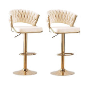 2x Height Beige Velvet Padded Golden Round Base Barstools Chairs