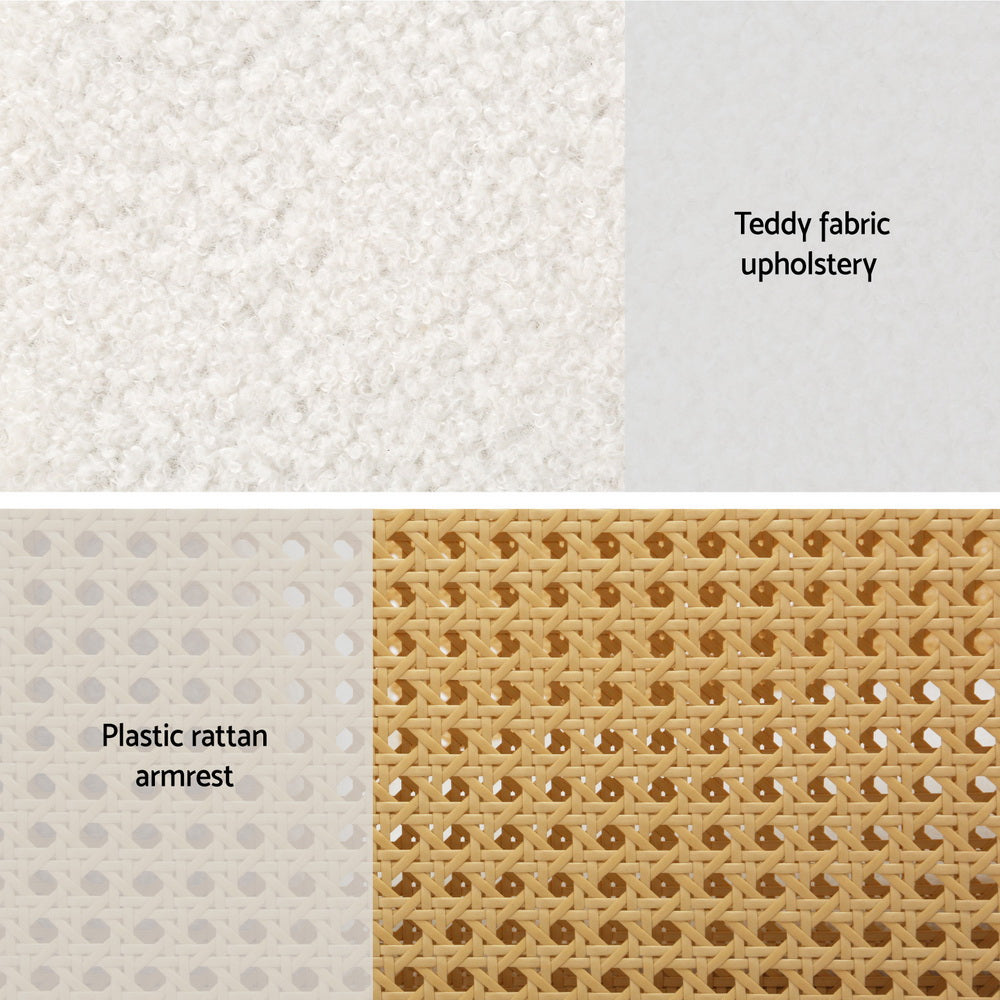 Allow your body to completely relax after a hard days work with the soft, cosy embrace of an Artiss Rocking Chair. Crafted with premium teddy fabric and PE rattan, the rocking chair exudes vintage elegance, adding a touch of luxury to your space. The soft and plush texture, thick cushioning and classic design invite you to kick back and relax, creating a cosy oasis for relaxation and comfort. The gentle rocking motion can help relax the body and rejuvenate the soul. A solid rubberwood frame and legs keep the chair stable and secure and allow for a weight capacity of 150kg. Anti-slip pads keep the chair in place and prevent scratches on your floors. Vintage-style rattan armrests make the chair practical as well as comfortable. Use our chair for relaxation, nursing, or simply enjoying the day. Get your Artiss Rocking Chair today.