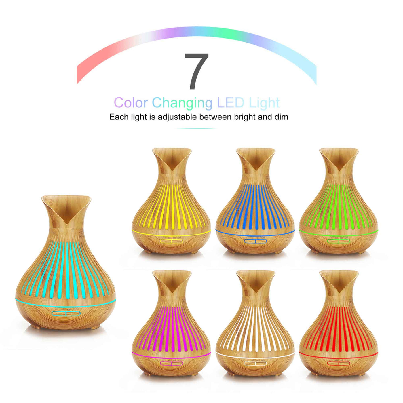 500ml Ultrasonic Aroma Diffuser Tulip Top Wooden Vase Design. With an elegant wood grain narrow top vase design, this 500ml ultrasonic...
