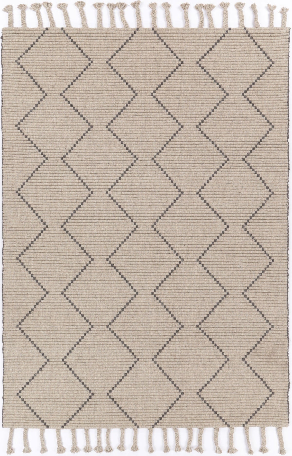 Tribal: Complete any setting with this hand made rug. Soft, lustrous wool yarns are hand-tuftedto create contrasting textures including oversized...