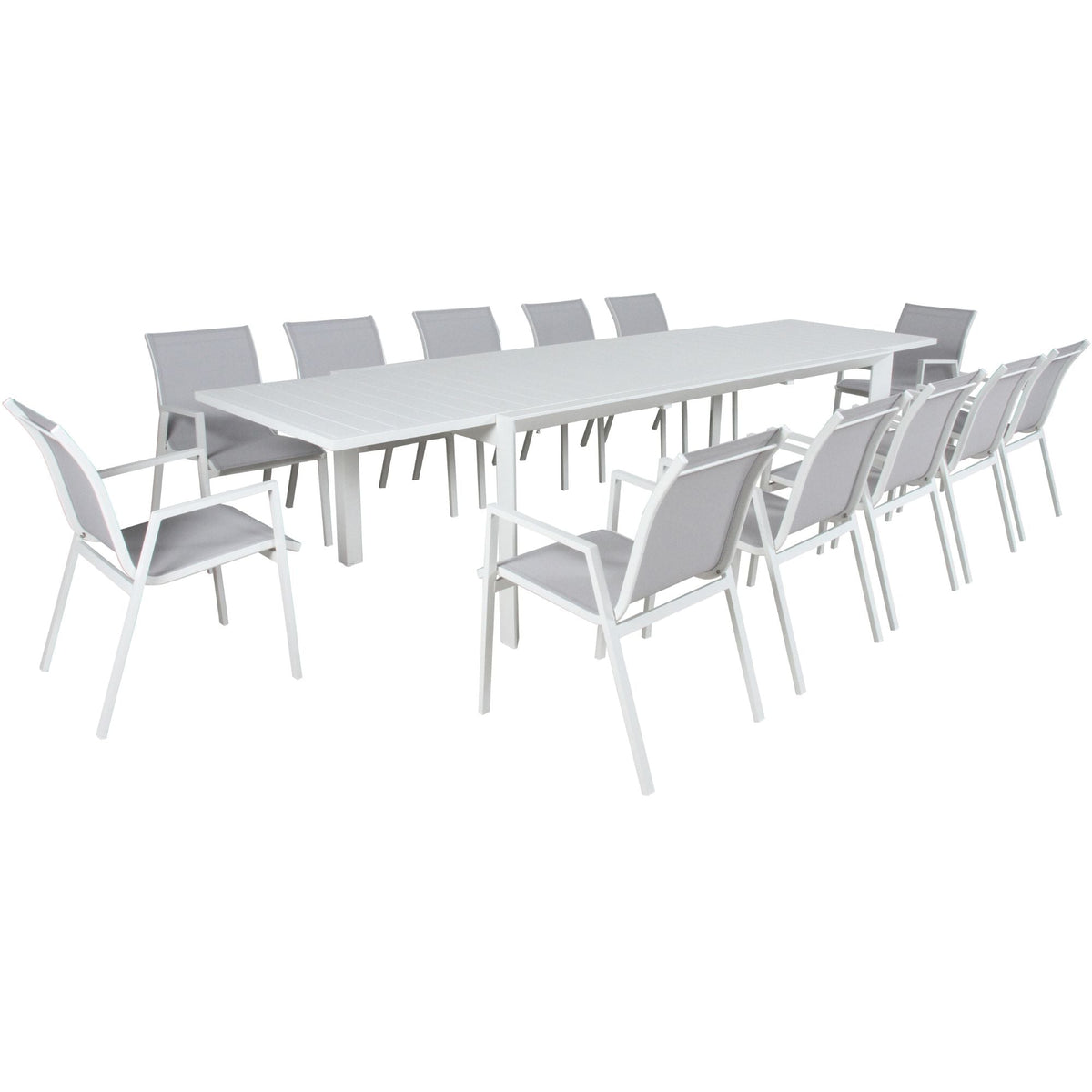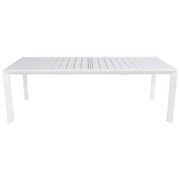 This is a beautiful all-weather 12-seater dining table that is just perfect for outdoor settings. Made of low-maintenance, non-rusting aluminium with a powder-coated finish, the dining table makes the outdoor dining experience trouble-free. The table has an easy-gliding aluminium slat surface. Its metal frame ensures the strength and durability of the table for years to come. The table is designed in a contemporary coastal style that looks pretty in an open-air dining setting and with which any kind of outdoor dining chair will look pretty. The dining table exudes a serene feel in the atmosphere due to its white colour finish. The easy-to-assemble dining table is durable as well and it comes with a 1-year warranty.