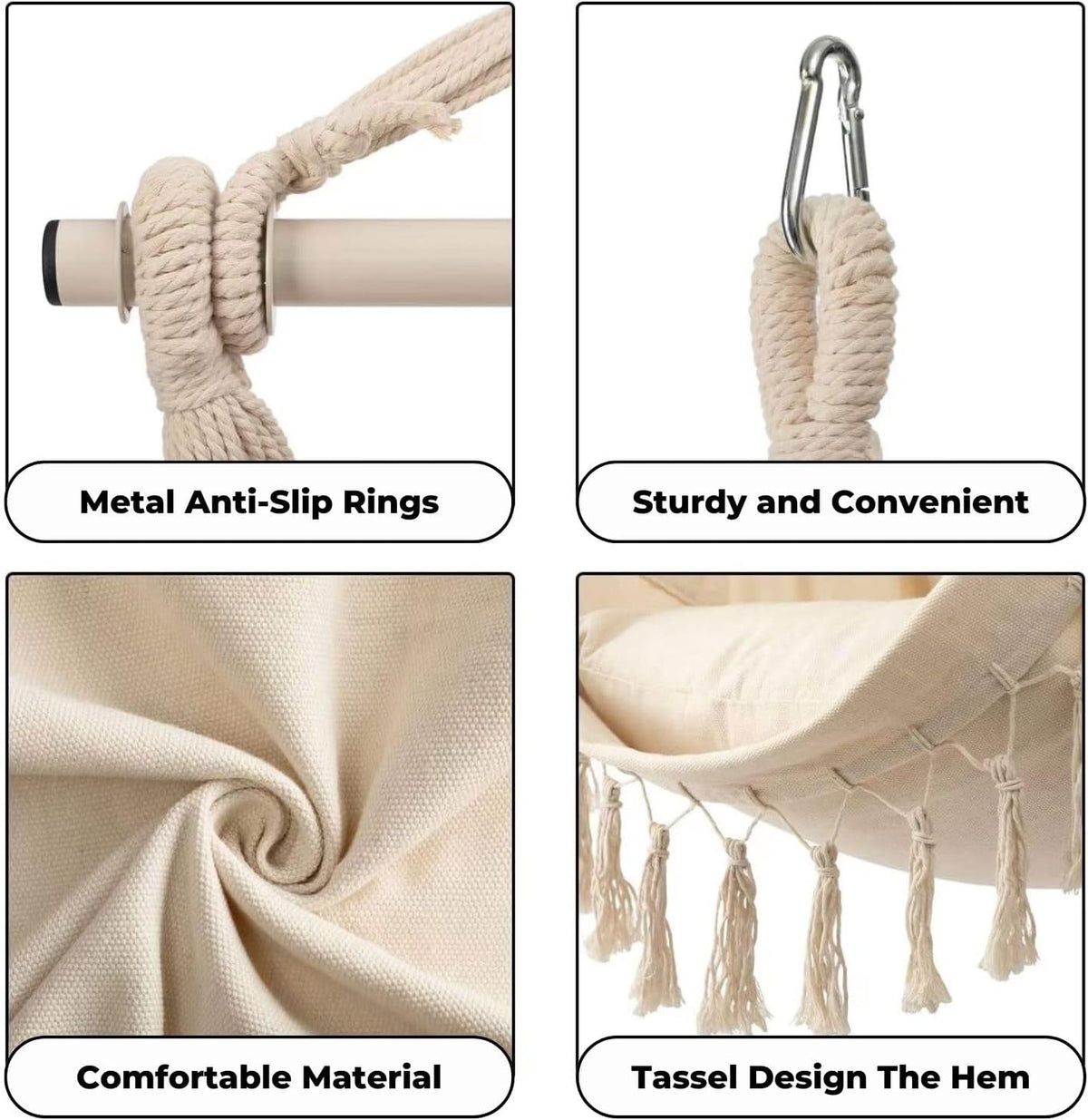 Noveden Hammock Chair Hanging Rope Swing with 2 Seat Cushions Included Beige NE-HC-103-XXW OVERVIEW Easy Assembly & High-Quality Material: Experience...